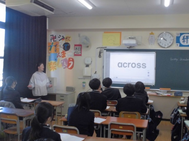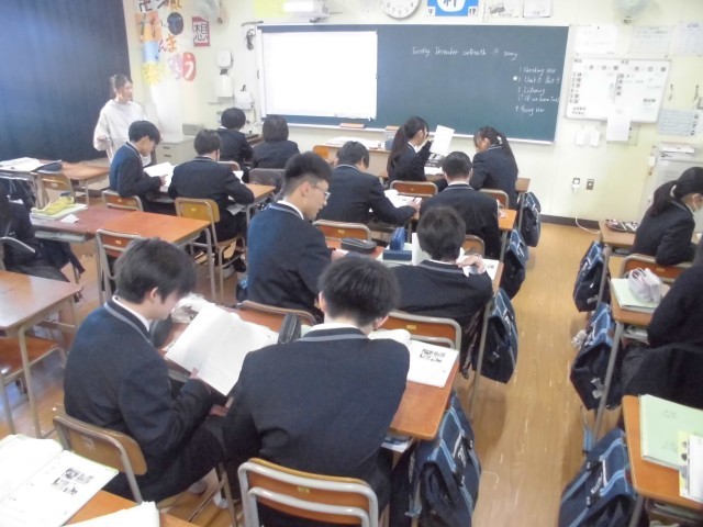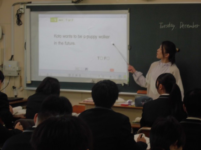 3年生の英語では、本文をリスニングしながら、問題に取り組んでいます。