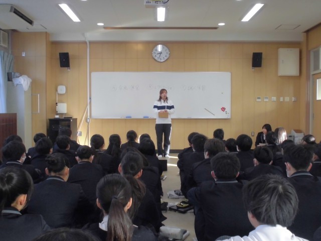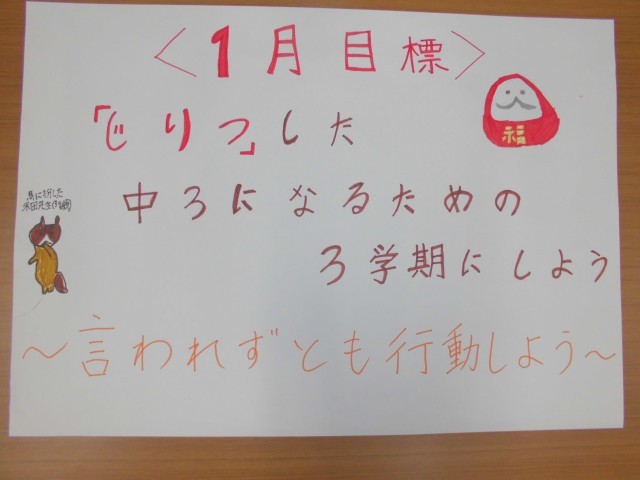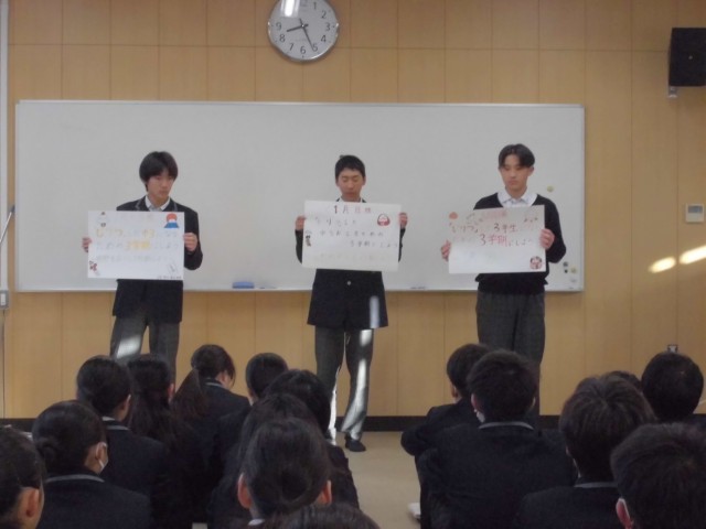 2年生の学年集会では、学年代表から1月の学年目標が発表されました。