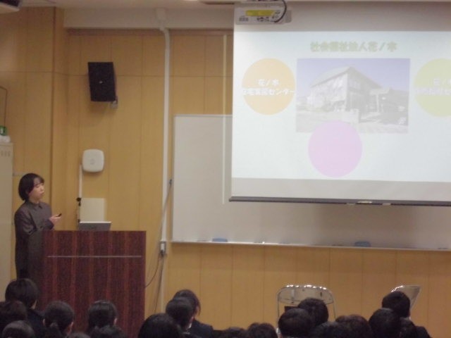 講師の方に、介護とはどんな仕事なのか?また、地域とのつながりについてお話していただきました。