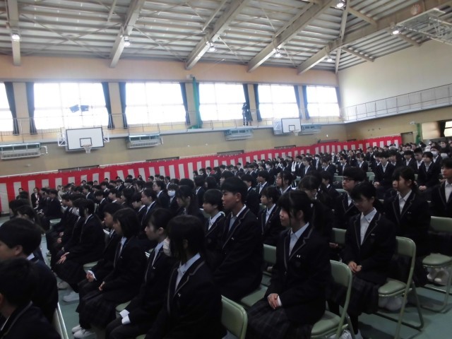 たくさんの保護者の方々、地域の皆様に見守られ、47期生 106名の生徒が入学しました。