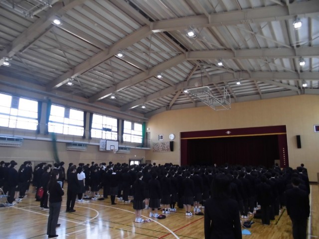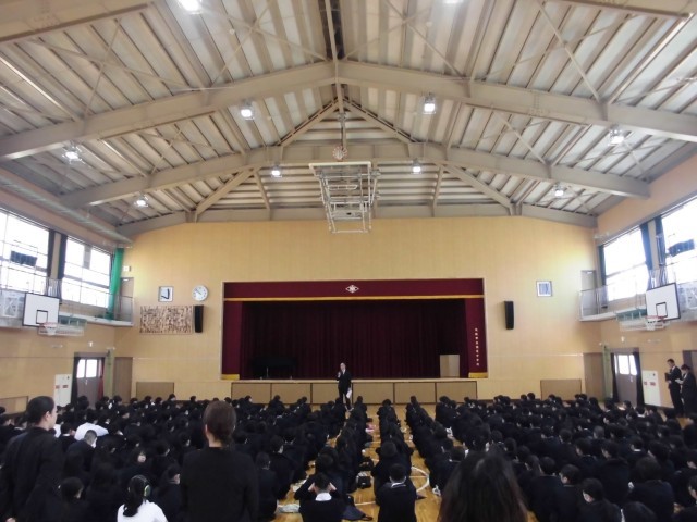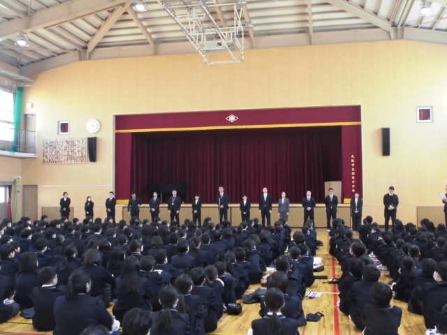 そのあとの全校集会では、前期生徒会の認証式と、春休みの部活動で表彰を受けた卓球部(個人戦)の表彰を行いました。