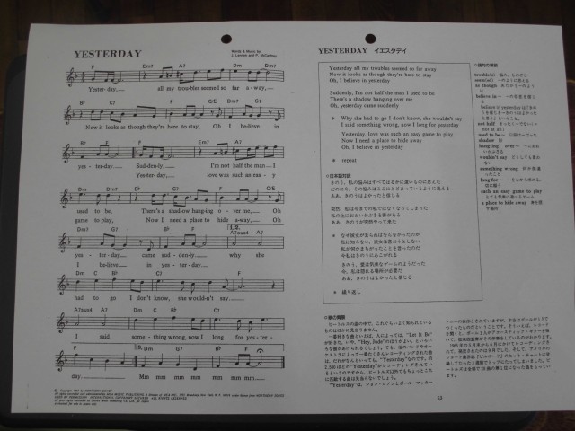 Beatles(ビートルズ)の楽曲「Yesterday」を聞き、歌詞を訳しています。