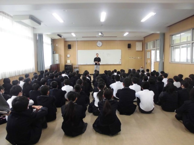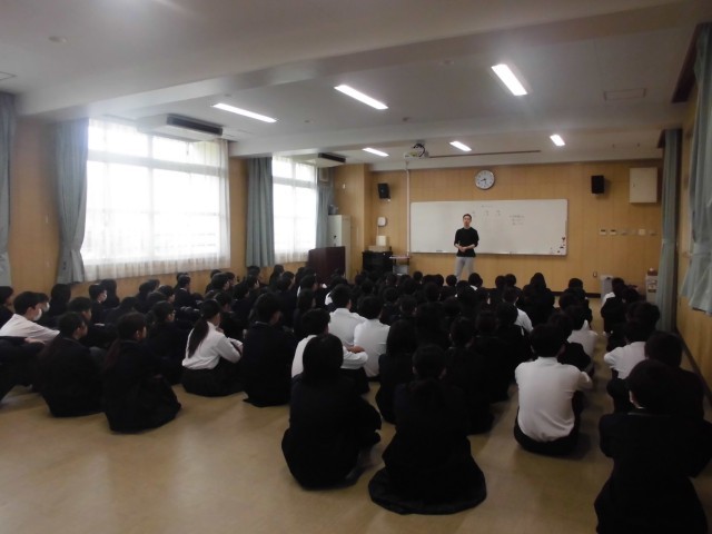1年生の学年集会では、学年主任の先生から「日々の授業を大切にしよう‼」というお話がありました。