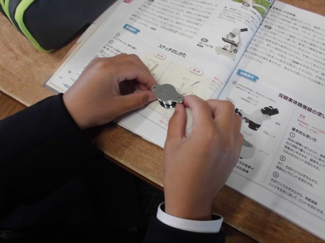 1年生の理科では、身近な生物を観察するために「ルーペ」の使い方を学習しています。