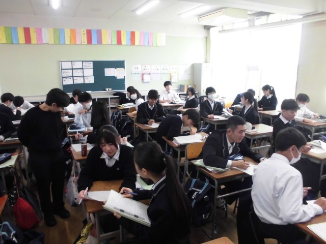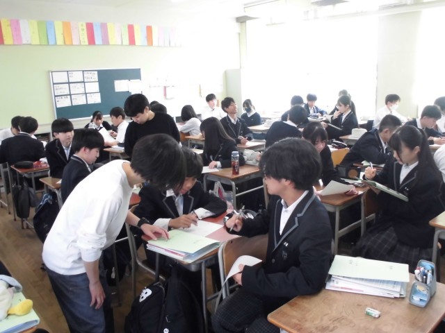 3年生の英語では、ペアになって、英語でインタビューをしています。