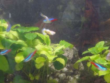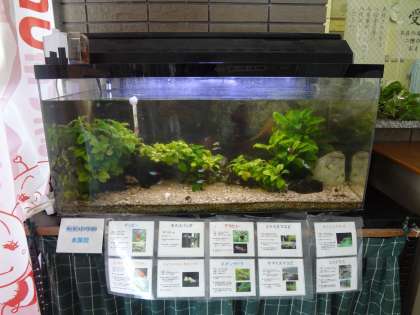 本校の玄関ガラス扉を入ってすぐの隅に、熱帯魚の水槽があります。かわいい熱帯魚が気持ちよく泳いでいます。水槽の水替えは、保護者や地域ボランティアの方々が交代で行ってくださいます。教育環境の整備に、保護者や地域の力をお借りしています。