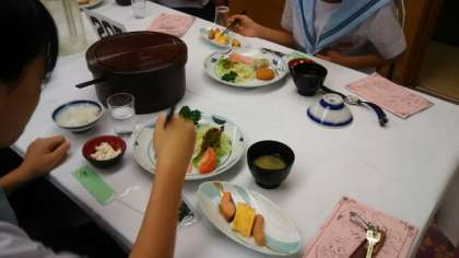 美味しい朝ごはんをいただいています。 皆、朝から元気です。このあと活動に入っていきます。