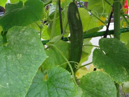 先週末にふれあい委員が種植えをした田辺大根の双葉が出ました。このまますくすく成長するよう皆でお世話をします。きゅうりはそろそろ終わりに近づいているようですが、今日も立派な実ができました。
