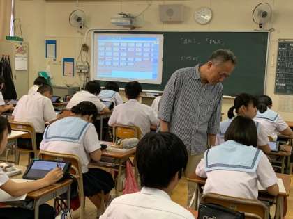 生命が増えていくとき染色体にある遺伝子を介して親から子へ形質が伝わること、その伝わり方に規則性があることを理解させる授業でした。「遺伝子」「DNA」という語句をインターネットから検索し、興味の引く事柄を詳しく調べて、その技術の概要、利用例、問題点をワークシートに記録画像してまとめ、調べた結果を発表し合いました。