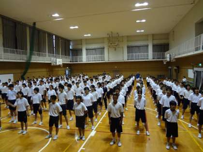 明日は第68回体育大会です。本日4限目に最後の練習を行いました。運動場の状態を考慮して、体育館で「校歌斉唱」の練習をしました。まだ、歌詞を覚えていない人もいるとか。明日は大きな声が聞こえてくることを期待しています。