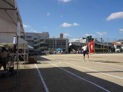 秋晴れの下、第68回体育大会を実施しました。前日の雨の影響で、朝から最後の準備をしました。開会式前から多くのご来賓・保護者の方々にお越しいただきましてありがとうございました。西田教頭の開会宣言の後、生徒会長を先頭に生徒の入場行進が始まりました。