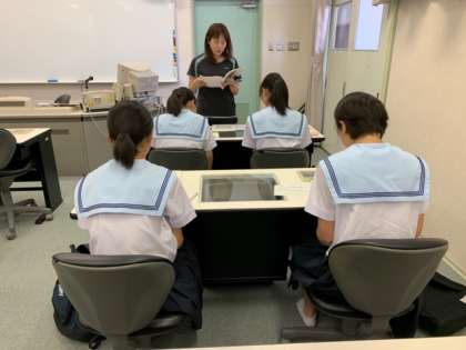 英語科の先生から全体説明と練習を受けた後、C-NETの先生と一対一の面接練習を行いました。