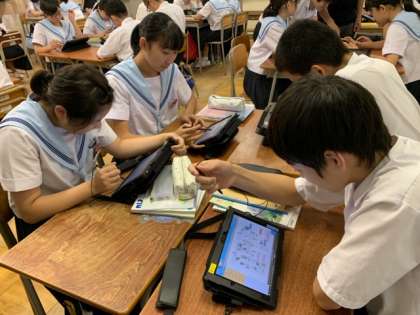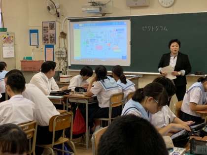 インターネットでピクトグラムを調べ、グループで協力しながら外国人向けの昭和中学校内フロアマップを作成しました。