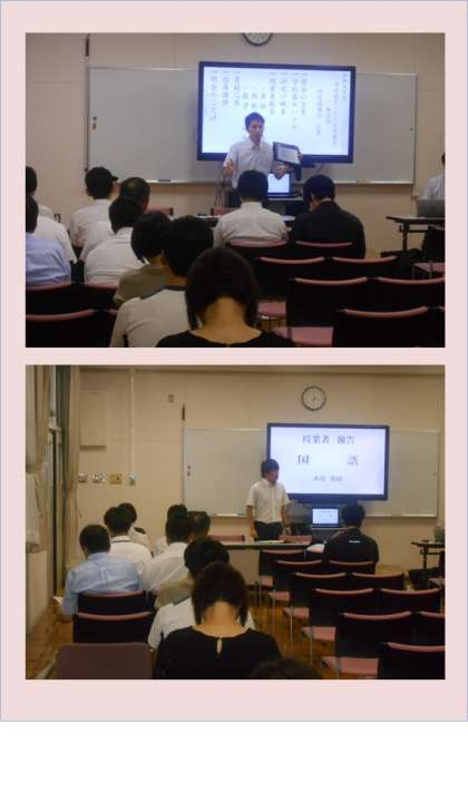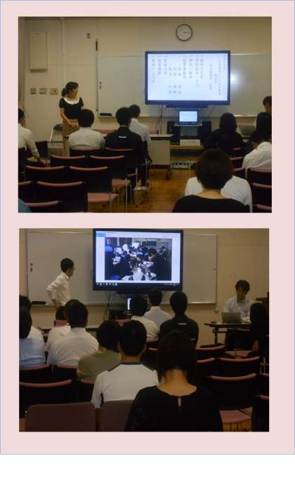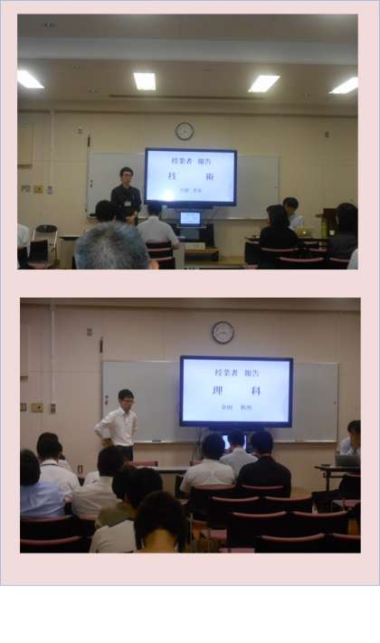 校長先生のあいさつの後、首席と校内研修担当者より研究の概要について趣旨説明を行い、授業者より順番に授業内容の報告を行いました。