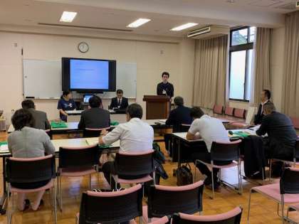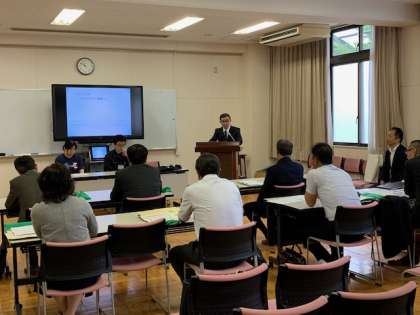 授業見学後、教育委員会の方の司会のもと、本校の取組みについて説明しました。