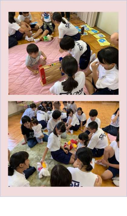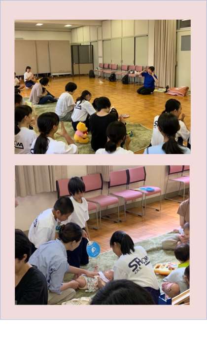 毎年、昭中すくすくーる(学校元気アップ)のコーディネーターさんが、地域の方々に回覧版で声をかけていただき、0〜3歳くらいの乳幼児と保護者の方と本校の中学生が触れ合うひと時の場を企画してくださいました。