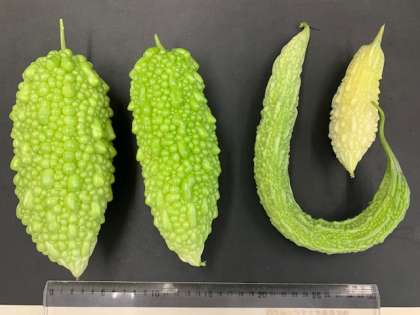 先週に夏野菜カレーでゴーヤを使いましたが、その後も次々と実がなっています。黄色くなる前に収穫しています。5種類のゴーヤができているので収穫の度に楽しみです。