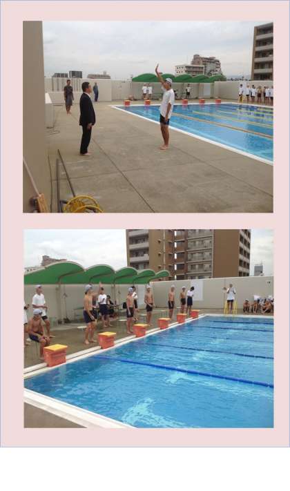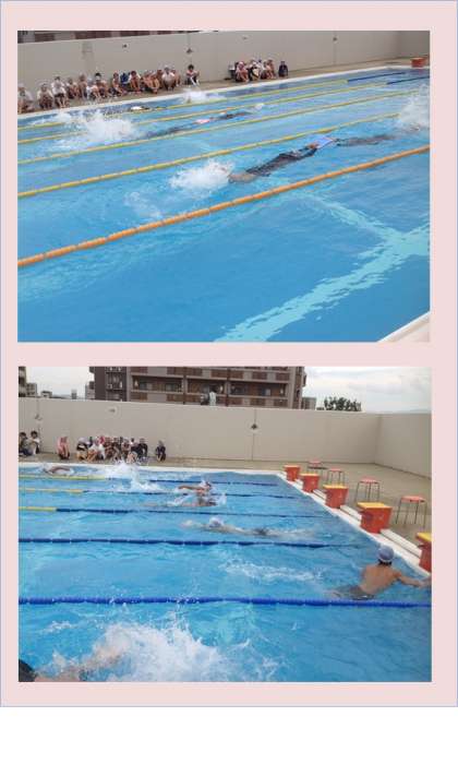 雨の合間を縫って、曇り空のもと2年生の水泳大会を行いました。