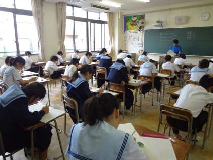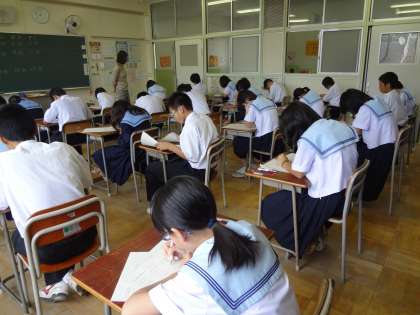 1年生、1限目は数学のテストです。
