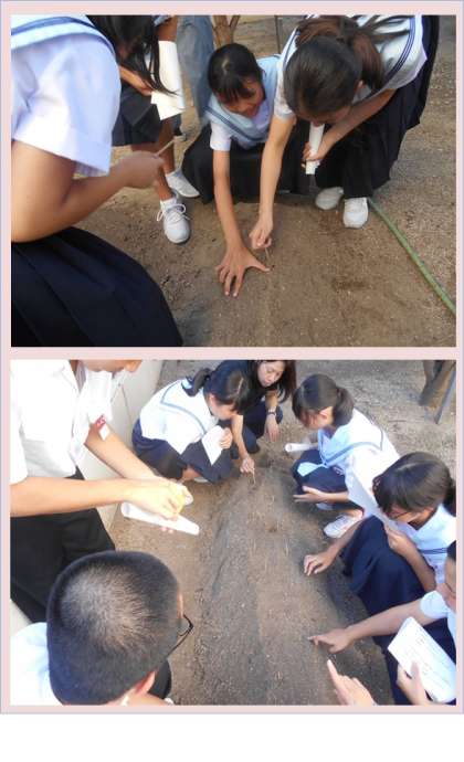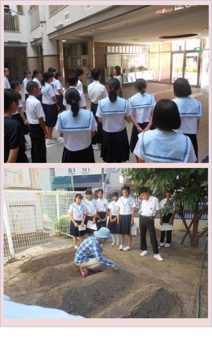 まだまだ暑さが残る中、学校元気アップコーディネーターさんのご指導のもと、ふれあい委員の生徒たちが田辺大根の種を植えました。3カ月後の収穫にむけて、ていねいに作業をし、しっかりと水をやりました。