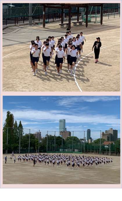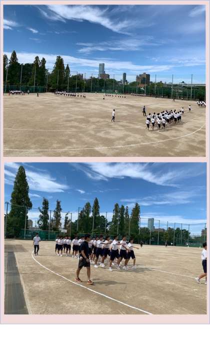 心地よい風が吹く爽やかな秋空のもと、1回目の体育大会全体練習を行いました。