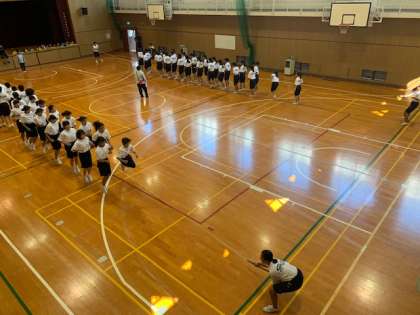 大縄跳びや学年種目競技の練習を入念に行いました。先生の注意に耳を傾けながら、楽しく真剣に取り組みました。