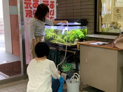 玄関に置いている熱帯魚の入った水槽を、毎月元気アップボランティアさんが清掃してくれています。