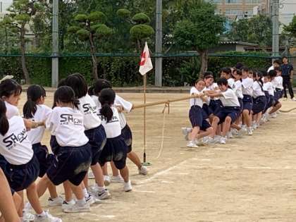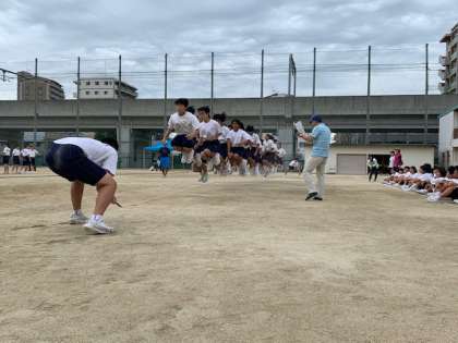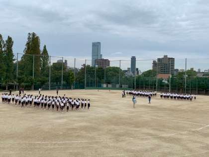 ちょうど一週間後に控えた体育大会本番に向けて、時折小雨の降る中、全体練習を行いました。