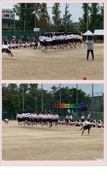 各クラスが1本の大繩を、全員のチームワークで何回跳べるかを競い合いました。結果は2年1組が64回で1位、1年1組が46回で2位、2年2組が43回で3位でした。どのクラスも朝練を行ったりして、本気で頑張った種目でした。