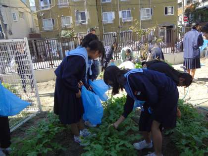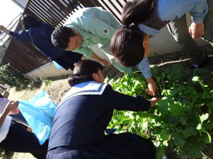 土曜授業終了後、ふれあい委員が元気アップコーディネーターとともに、田辺大根の間引きをしました。冬に大きく成長した大根が収穫できるように日々世話をしています。