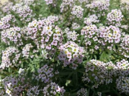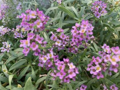 南に面して「アリッサム」の小さい花が、こんもりと可憐に咲いています。元気アップボランティアさんが当番で毎日水やりをしてくださっています。ありがとうございます。