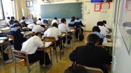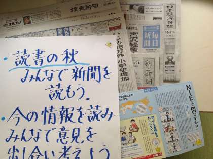 先週に引き続いて、授業前の朝の時間を活用して、全校生徒一斉に新聞を読みました。