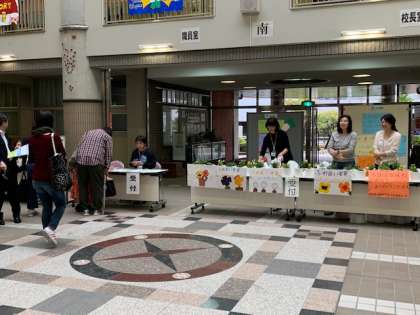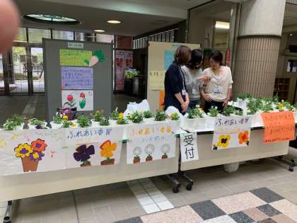 展示の部 ふれあい委員会「お花のプレゼント」とリサイクル服の受付