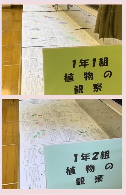 各自が一つ一つの花をスケッチし、そして丁寧に調べました。また夏休み中の自由研究も展示しています。とてもよく調べられています。