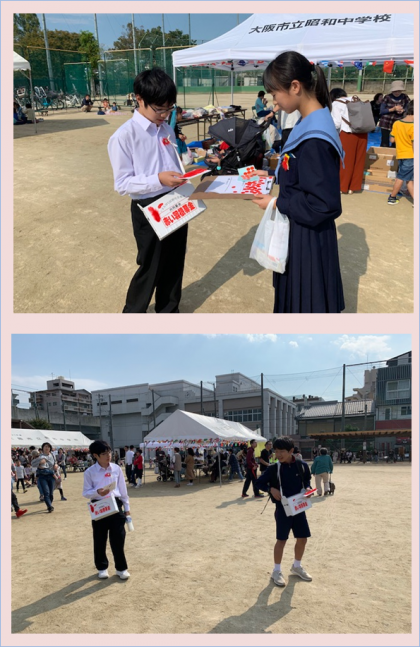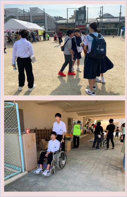 生徒会役員を含む9名の生徒がボランティアに参加してくれました。募金活動担当とアンケート担当、車いす体験担当に分かれて手伝ってくれました。主催者の方たちも大変喜ばれて後日感謝状が届くそうです。ご苦労様でした。
