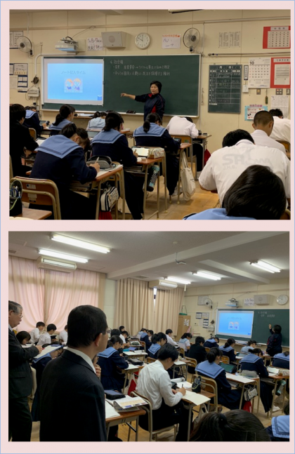 大阪市教育センターの教育指導員の方が来校し、4人の先生の授業を参観され、ご指導・助言をいただきました。
