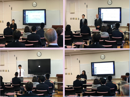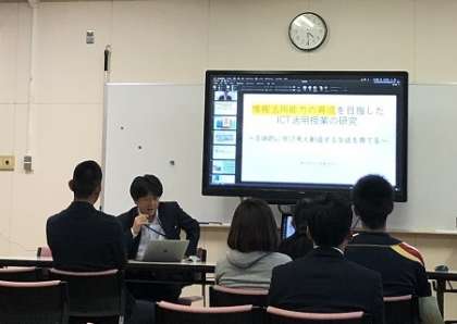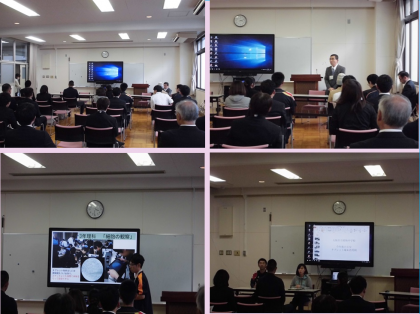 学校長よりご挨拶を申し上げ、3人の先生から研究の概要について説明を行いました。その後、公開授業を行った先生一人ひとりから授業についての報告があり、質疑応答を行いました。