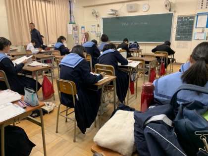 今日から4日間の予定でテスト前学習が始まりました。3学年で40人の申し込みがあったので、2教室に分けておこないました。とても静かに黙々と学習に取組んでいました。
