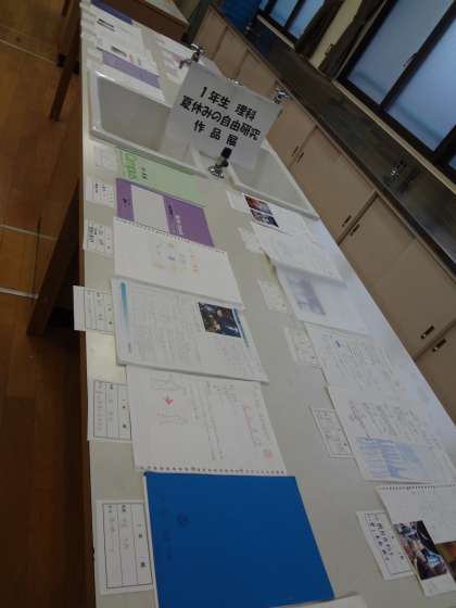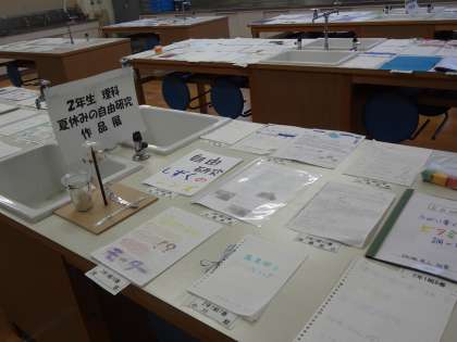 理科は、1・2年生とも夏休みの自由研究作品を展示しました。