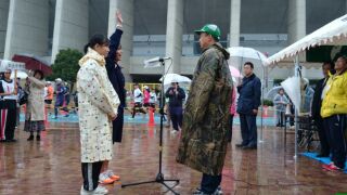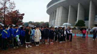 11月9日(日)、長居公園内周回道路において、阿倍野区中学生親善駅伝大会が開催されました。雨模様の中、5中学校が参加し、女子の部と男子の部に分かれて競技が行われました。本校陸上部主将の山口君が栄えある選手宣誓のくじを引き当てました。はきはきとした口調で、すばらしい選手宣誓を行いました。