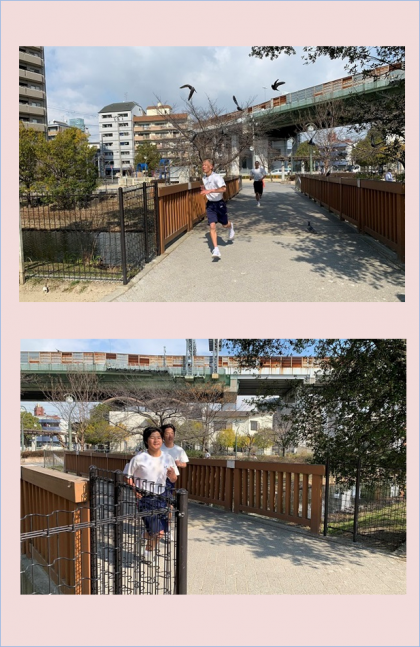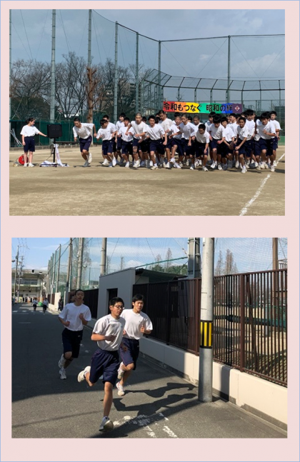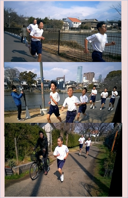 ピストルの合図とともに一斉に駆け出し、女子と同じ4.5kmのコースを走りました。2年生集団がトップを競い合い、1位〜4位を占めました。1年生も健闘し10位以内に3人が入りました。男子も全員が最後まで精一杯持てる力で走り切り、完走しました。