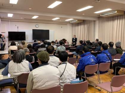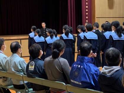 計35人の方がお見えになり、多目的室で協会の方と学校長から挨拶がありました。