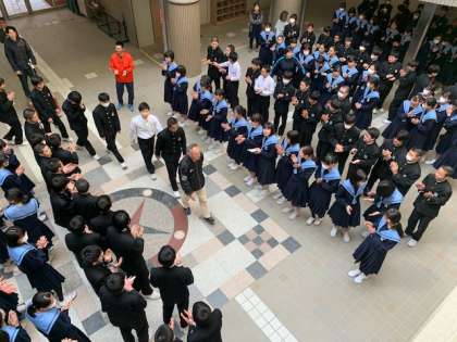 3年生の登校も今日が最後になったため、急遽、お別れ会を持ちました。何の準備もしていませんでしたので簡素なものでしたが、対面で簡単な挨拶と花道を作って拍手で送りました。