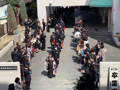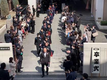 保護者の皆様の温かい拍手に包まれた花道を通って、3年生は学び舎を巣立っていきました。