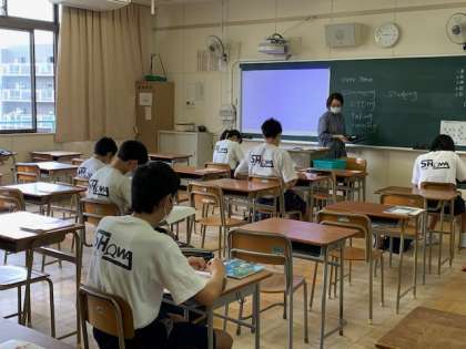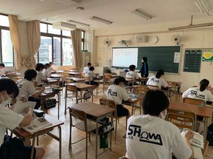Aグループは午前中、Bグループは午後から登校し、30分×5コマの授業を行いました。暑い中でしたが、生徒は水分補給を行いながら、休憩時間は手洗いを励行しました。