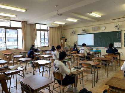 3年生の授業を優先するという旨に従い、3年生を午前・午後の2分割に分けて、30分の授業を5コマずつ行いました。感染症対策のために、音楽の授業も音楽室を使わずに教室で行いました。