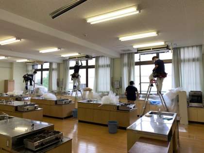 夏のエアコン本格稼働に向けて、業者に来ていただき、各教室・準備室のエアコンのフィルター清掃をしていただきました。