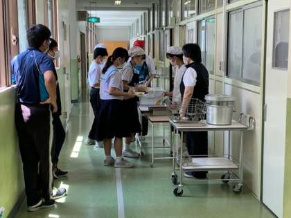 給食返却時に、生徒が「美味しかったです」と配膳員の方に伝えていました。配膳員の方も微笑んでいらっしゃいました。