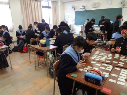 1年生は、来年に実施する百人一首大会の練習を昨日から始めました。少しは上達したでしょうか。かなり白熱した練習のようです。