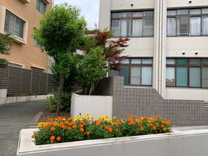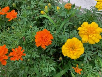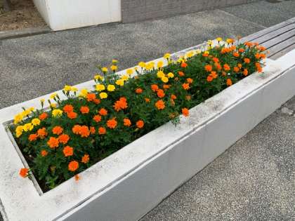 玄関に入って直ぐの花壇にマリーゴールドが植わっています。